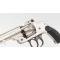 Revolver Smith & Wesson DA Safety modèle breveté en 1880, capacité 5 coups en double action, calibre 38 S&W. Nickelage d' origine en parti manquant avec fines taches sans corrosion. Beaux marquages de patent sur le dessus de la bande du canon non atténué, ainsi que l'indication du calibre et le logo S&W. Mécanisme complet et fonctionnel avec toutes pièces d'origine au même numéro, sans entre fer excessif entre le canon et le barillet, excellent verrouillage sans jeu, indexation parfaite. Canon rond à méplat supérieur, long de 15cm, rayures légèrement usagées et tachées. Plaquettes de crosse en gutta-percha noir sans accident.
