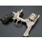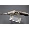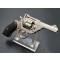 Revolver Webley pocket modèle Mark III rare fabrication en calibre 320 ou 32 long Colt, 6 coups simple et double action à percuteur intégré à la carcasse, marqué du vendeur James Woodward & Sons 64 St James Street London. Finition nickelé sans usure hormis de fines taches sans aucune oxydation, Webley Patent et logo W&S sur la carcasse avec indication du modèle et du calibre. Mécanique complète au fonctionnement irréprochable sans aucun jeu au verrouillage du barillet et à la fermeture de la carcasse, toutes pièces d'origine au même numéro, indexation des chambres et entre-fer parfait. Canon long de 78mm, rayures brillantes miroir sans usure ni tache. Plaquettes de crosse en gutta-percha quadrillées.