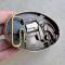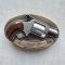 S'installe sur en lieu et place d'un boucle de ceinture classique, munie d'un bouton poussoir pour la libération rapide du revolver.