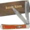 10,49cm fermé. 2 lames en acier 440 de type : Clip point & Razor. Orange smooth Manche en os de buffalo. Platines en laiton & mitres en nickel. Ecusson incrusté dans le manche.