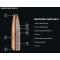Ce design permet la séparation de deux noyaux de dureté différente, assurant une double action : la section avant se fragmente rapidement au contact de l'animal, délivrant une énergie immense pour un effet maximum, tandis que la section cylindrique arrière se sépare au niveau du sillon en H, pénétrant même à travers le gibier le plus lourd sans se déformer et assurant une sortie de balle désirée.