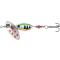 Le Spearhead Ryuki Spinner est une cuillière tournante équipée d'un corps dense aux allures de l'emblématique gamme Ryuki. Sa conception ainsi que sa faculté à ne pas décrocher lors de la récupération vous permettront de peigner aussi efficacement des zones où le débit de l'eau est lent que des cours d'eau où le débit est très rapide. Polyvalente et très facile à utiliser, sa densité vous aidera à atteindre de longues distances au lancer. Poids du lest : 5 gr / Poids total : 7 gr Poissons ciblés : Perche, Truite nb de roulement : - frein max (kg) : - nb de roulement : - frein max (kg) : - Main : - Contenance :- Contenance :- Ratio : - Récup. (cm/turn) : - Longueur pliée (cm) : - Sections : - Line min (lb) : - Line max (lb) : - Poids leurre min (g) : - Poids leurre max (g) : - Densité : - N° hameçon : - Type hameçon : - Poids (g) :7 Taille (mm) : - Longueur (mm) : - Longueur (cm) : - Longueur (m) : - Hauteur (mm) : - Capacité (L) : - famille de ligne :- Resist (lb) : - N° PE : - Largeur (mm : )- Aromatisé : - Bruiteur : -