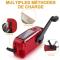 Méthodes de recharge : Manivelle, panneau solaire, charge USB
