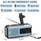 Radio Solaire d'urgence Météo AM/FM Manivelle Batterie 2000mAh Alarme SOS Portable Lampe LED Bleu