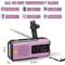 Radio Solaire d'urgence Météo AM/FM Manivelle Batterie 2000mAh Alarme SOS Portable Lampe LED Rose