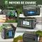 Elle peut être chargée et alimentée par USB-C, manivelle et panneau solaire, ou alimentée par 3 piles AAA