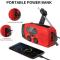 Radio d'Urgence Météo Solaire Portable AM/FM Manivelle Piles Chargeur de Batterie 2000mAh Rouge
