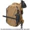 Les fentes sont également conçues pour fonctionner avec les systèmes de vis pour la fixation de divers accessoires, étuis en nylon et en cuir pour couteaux, machettes, haches, radios, magazines, etc. Les différents trous et fentes peuvent recevoir des vis 1/4 20" pour le montage de caméras, de bras articulés, de lampes, de batteries externes.