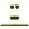 Rampe de protection de câble 1 canal caoutchouc 100cm Cette rampe de protection de câble à canal unique a été spécialement conçue pour dissimuler et protéger des fils, des câbles, des tuyaux, des tubes ou des conduites. La rampe est en caoutchouc léger, résistant et durable. La rampe est colorée en jaune vif et présente des symboles d'avertissement sur la surface pour la rendre plus visible. La rampe est dotée d'un seul canal pour guider et protéger vos câbles et peut supporter un poids maximal de 5 tonnes. Le câble peut être facilement placé ou enlevé en soulevant le couvercle supérieur. Grâce à sa conception modulaire, plusieurs rampes peuvent être connectées pour accueillir des câbles plus longs.