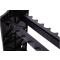Grâce à sa conception intelligente, le rack ne prend pratiquement pas de place et, à l’aide de la poignée de transport, l’ensemble du rack peut être déplacé sans effort. Le rack est fourni en kit, mais grâce à sa construction astucieuse, même le pêcheur peut l’assembler avec deux mains gauches.