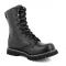 Réplique de la botte de combat "parachutiste" de la Bundeswehr. Entièrement doublée de cuir pour améliorer le confort. Le système de laçage (9 crochets) permet d'enfiler et d'ôter la botte rapidement. L'embout renforcé en acier protège contre les blessures. Cependant, ce modèle n'est pas reconnu comme chaussure de sécurité. La semelle extérieure est résistante à l'huile et aux hydrocarbures.