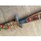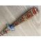 • Manche & Fourreau : En bois richement sculpté et peint à la main avec des motifs circulaires et triangulaires (rouge, vert, crème). Très bon état de conservation des couleurs.
