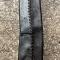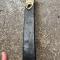 Fourreau en cuir noirci avec ferrures en laiton ; décor végétal discret encore visible.