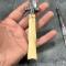 La pièce présentée ici possède un manche en os poli, finement façonné, avec sa patine naturelle.