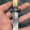 État : Bon état général — petites fissures sur le manche (stable), piqûres sur la lame, gravures visibles