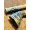 Pommeau en corne naturelle avec incrustation de pierre de différentes couleurs .