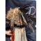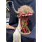 bandeau perlé sioux , grelots , traîne à franges,  plumes de corbeaux