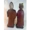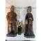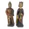 Rare paire de sculptures en stuc polychrome représentant un chevalier en armure et une reine couronnée.