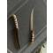 Je vous propose un superbe couteau ancien visible sur le livre le COUTEAU de gabriele MANDEL couteau a lame matmunj d'acier, manche peint a la main constitué de JADE de NACRE et de filets d'ARGENT avec son etui en bois recouvert de cuir tres belle lame de. 115mm longueur totale 195mm le tout en tres bel etat 19.20eme siecle Un couteau identique est visible au deutsches klingenmuseum a solingen ,dit aussi PESH KABZ couteau utilisé pour percer les cottes de maille je rajoute le même un peu plus grand sans fourreau
