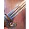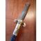 Bonne lame réglementaire de 400mn à double pans creux, garnitures laiton décorées,fusée corne blonde avec quelques manques( rongeurs!!!).