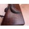 Belle crosse en noyer à la française à joue avec sculpture de tête de chimére.