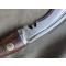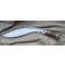 Kukri de modèle Mk2 de la seconde guerre mondiale estampillé "AW43" pour "Arsenal Workshops 1943". Beau marquage complet à la base de la lame. Bon état général avec quelques traces de piqûres d'usage sur la lame, ce qui est normal, vu son êge. Poignée en bois en très bon état avec rivets en acier et laiton presque parfaitement circulaires. Fourreau en bois recouvert de cuir patiné, embout en laiton oxydé, équipé de son porte-fourreau en cuir.
