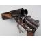 Ce grand pistolet lance-fusées à double-canon, réglementaire dans la Kriegsmarine, était utilisé sur les U-boote au cours de la Deuxième Guerre mondiale. Le rare exemplaire proposé ici, qui porte le numéro de série « 3400 », est celui qui illustre l'article publié dans le magazine Gazette des Armes n°567 (octobre 2023). Il est dans un très bon état de conservation et son fonctionnement est irréprochable. Le verrouillage des canons ne présente pas le moindre jeu et sa platine de type DAO procure un fonctionnement très doux. La queue de détente unique commande les deux percuteurs et un levier à trois positions permet de choisir de tirer le canon droit, le canon gauche ou les deux en simultané. Les marquages sont bien lisibles, d'autant plus qu'ils ont été remplis de blanc par le précédent propriétaire (pratique courante chez les collectionneurs, ce remplissage au Tipp-ex est facile à retirer) : code de guerre du fabricant « eeu », qui désigne la Communauté des usines métallurgiques de Thuringe ; année de mise en service « 44 » pour 1944 ; poinçon d’acceptation de la Kriegsmarine. La production de ce modèle, dont la carcasse et les canons sont en duralumin anodisé, le mécanisme en acier inoxydable et les plaquettes en noyer quadrillées à la main est estimée à 7000 exemplaires, dont beaucoup reposent à jamais au fond des océans (sur les 1.154 U-Boote mis en service au cours de la Seconde Guerre mondiale, 743 ont été coulés et 30.000 des 40.000 sous-mariniers qui servaient à leur bord ont péri en mer).