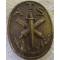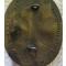 Rare plaque d'identité d'un ouvrier de l'arsenal de Tarbes (A.T.S.) en bronze fabrication "DRAGO" dos lisse avec attente pour épingle à nourrice.pour éviter les sabotages et l'espionnage industriel tout le personnel devait porter cette plaque en évidence sur les vétements pour franchir le poste de garde ou pour les déplacements internes! RARE!!
