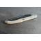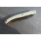 Lame acier carbone nettoyée, affûtée, frappée de la marque. Manche en ivoire clouté bombé laiton avec déco. acier. Fonctionnement parfait. Aucun jeu et ressort ferme. Ouvert: 202 mm- Fermé: 11 mm. Lame: 9,7 cm Poids: 62,17 g.