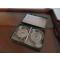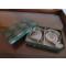 Rare coffret complet ancien Taste-vin tastevin en étain, "Étains du Manoir", poignée serpent pour l'un et poignée coquille Saint Jacques pour l'autre.