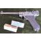 Rare variante du pistolet P 08 de la marine impériale allemande dans sa version 1908 carcasse longue et arretoir de culasse en calibre 9 x 19. Arme fabriquée seulement à 8500 Exemplaires! C’est une pièce particulièrement compliquée à trouver surtout en bel état d’origine et avec un canon tel que le possède cet exemplaire! (voir photo des rayures franches et brillantes!)