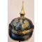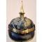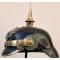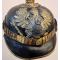 Rare casque à pointe d'officier de réserve du 93 éme régiment d'infanterie du Duché de Anhalt. Casque en parfait état (seul point notable une écaille de jugulaire à refixer (reste une agrafe en place) nuquière un peu lâche. Coiffe interne présente et en bon état, grande taille. Pointe officier non démontable, bonnes cocardes dont la spécifique verte du Duché du Anhalt. coiffure sincère et convoitable.