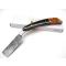 Rasoir Coupe Choux pliant - Lame en acier carbone 1095 256 couches de Damas - Longueur fermé 15.87cm - Longueur de la lame 10.16 cm Plaquettes du manche en corne de buffalo & noyer - Platines en laiton guillochées - Ne convient pas pour un rasage manuel
