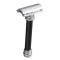 Un rasoir 2 pièces, lourd et long pour une très bonne prise en main. Laiton anodisé noir avec finitions chromées. Le changement de la lame est très simple puisqu'il suffit de tourner le bas du manche afin de dévisser la tête. Il dispose d'un manche en métal anodisé noir avec finition chromé. Un hommage au Barber's Pole, l'enseigne mondialement connue arborée par les barbiers.