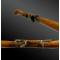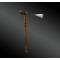 Récade en bois sculpté d’un manche effilé animé d’un caméléon sur la partie proximale. La lame est de forme triangulaire et la tête de hache coudée est quant à elle travaillée d’un visage féminin à coiffure finement tressée.