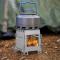 Une fois le réchaud allumé, vous pouvez l'utiliser comme un feu de camp contenu et charger du bois par le haut. Vous pouvez également cuisiner sur le feu, le chargement se faisant alors par le côté grâce à la languette de support de bois.