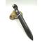 Réplique du Couteau de la Hitlerjugend (Jeunesse Allemande ) qui fût adopté en 1933 jusqu'en 1942. Lame affûté. Poignée métal avec décors en ABS avec . Fourreau métal noir avec lanière en cuir pour l'accrocher à la ceinture.
