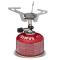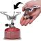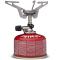 Parce que c'est un réchaud pliable, l'Express Stove de la marque Primus peut tenir dans la paume de votre main : plié, il mesure 87 mm de long, 80 mm de large et 40 mm d'épaisseur. Déplié et installé sur votre cartouche de gaz, c'est un vrai réchaud de camping minimaliste avec un support de casserole (à 3 ailettes dentelées) suffisamment stable. Il ne pèse que 82 grammes et il se range à l'intérieur d'une mini housse (housse fournie). Allumé, il offre une puissance maximale de 8900 BTU ou 2600 W (pour une ébullition en 2 minutes et 30 secondes). Bien sûr, la puissance de flamme est réglable : molette intégrée au réchaud. En ce qui concerne l'alimentation en gaz, ce réchaud compact est compatible avec quasiment toutes les cartouches de gaz du marché : n'importe quelle cartouche de propane, de butane ou d'isobutane ayant un pas de vis (le pas de vis en question est universel). Il est donc très facile de trouver une recharge en gaz partout où vous voyagez.