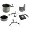 Quasi identique au pack Optimus Elektra FE classique mais davantage noir, le pack Optimus Elektra FE en version Tactical et couleur Black Edition gagne en furtivité. Son poids (464 g) et son volume (165 x 124 mm) sont très avantageux compte tenu du set proposé : popote Terra Weekend HE en alu anodisé (casserole + poêle), réchaud Crux Lite, pare-vent Windshield et trépied Optimus. Inclus : housse.