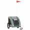 Remorque de vélo pour animaux de compagnie grisCette remorque de vélo pour animaux de compagnie pratique est un excellent complément à la journée de votre animal de compagnie, lui permettant de profiter d'un voyage plus confortable. Cadre durable : le fer est un matériau solide et dur. Il est très apprécié dans la construction industrielle et la fabrication de meubles. Avec un cadre en fer, la remorque de vélo est robuste et fiable, ce qui vous permet de rouler en toute sécurité sur la route.Remorque de vélo confortable : cette remorque pour vélo est fabriquée en tissu oxford et comprend une housse en PVC pour protéger votre animal de compagnie de la bruine. De plus, le fond de la remorque est équipé d'une planche de support de charge noire pour un espace confortable.Conception pratique : Les portes avant et arrière à fermeture éclair facilitent l'entrée et la sortie. Les fenêtres en filet et le toit à fermeture éclair permettent à l'air de circuler à l'intérieur et de garder votre animal de compagnie au frais pendant le voyage.Conduite en toute sécurité : la remorque de vélo dispose de deux grandes roues qui permettent un déplacement en douceur et en toute sécurité sur différents terrains et les réflecteurs à l'extérieur offrent une visibilité dans l'obscurité, et le drapeau peut augmenter la sécurité routière.Nombreuses applications : parfaite pour transporter les petits chiens et les animaux de compagnie, cette remorque de vélo pour animaux de compagnie peut être attachée à votre vélo facilement. Elle peut également être utilisée pour transporter des courses, d'équipement de camping, des articles de sport ou tout autre objet que vous souhaitez emporter avec vous !