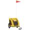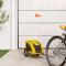 Remorque de vélo pour animaux de compagnie jauneCette remorque de vélo pour animaux de compagnie pratique est un excellent complément à la journée de votre animal de compagnie, lui permettant de profiter d'un voyage plus confortable. Cadre durable : le fer est un matériau solide et dur. Il est très apprécié dans la construction industrielle et la fabrication de meubles. Avec un cadre en fer, la remorque de vélo est robuste et fiable, ce qui vous permet de rouler en toute sécurité sur la route.Remorque de vélo confortable : cette remorque pour vélo est fabriquée en tissu oxford et comprend une housse en PVC pour protéger votre animal de compagnie de la bruine. De plus, le fond de la remorque est équipé d'une planche de support de charge noire pour un espace confortable.Conception pratique : Les portes avant et arrière à fermeture éclair facilitent l'entrée et la sortie. Les fenêtres en filet et le toit à fermeture éclair permettent à l'air de circuler à l'intérieur et de garder votre animal de compagnie au frais pendant le voyage.Conduite en toute sécurité : la remorque de vélo dispose de deux grandes roues qui permettent un déplacement en douceur et en toute sécurité sur différents terrains et les réflecteurs à l'extérieur offrent une visibilité dans l'obscurité, et le drapeau peut augmenter la sécurité routière.Nombreuses applications : parfaite pour transporter les petits chiens et les animaux de compagnie, cette remorque de vélo pour animaux de compagnie peut être attachée à votre vélo facilement. Elle peut également être utilisée pour transporter des courses, d'équipement de camping, des articles de sport ou tout autre objet que vous souhaitez emporter avec vous !