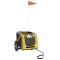 Remorque de vélo pour animaux de compagnie jaune et grisCette remorque de vélo pour animaux de compagnie pratique est un excellent complément à la journée de votre animal de compagnie, lui permettant de profiter d'un voyage plus confortable. Cadre durable : le fer est un matériau solide et dur. Il est très apprécié dans la construction industrielle et la fabrication de meubles. Avec un cadre en fer, la remorque de vélo est robuste et fiable, ce qui vous permet de rouler en toute sécurité sur la route.Remorque de vélo confortable : cette remorque pour vélo est fabriquée en tissu oxford et comprend une housse en PVC pour protéger votre animal de compagnie de la bruine. De plus, le fond de la remorque est équipé d'une planche de support de charge noire pour un espace confortable.Conception pratique : Les portes avant et arrière à fermeture éclair facilitent l'entrée et la sortie. Les fenêtres en filet et le toit à fermeture éclair permettent à l'air de circuler à l'intérieur et de garder votre animal de compagnie au frais pendant le voyage.Conduite en toute sécurité : la remorque de vélo dispose de deux grandes roues qui permettent un déplacement en douceur et en toute sécurité sur différents terrains et les réflecteurs à l'extérieur offrent une visibilité dans l'obscurité, et le drapeau peut augmenter la sécurité routière.Nombreuses applications : parfaite pour transporter les petits chiens et les animaux de compagnie, cette remorque de vélo pour animaux de compagnie peut être attachée à votre vélo facilement. Elle peut également être utilisée pour transporter des courses, d'équipement de camping, des articles de sport ou tout autre objet que vous souhaitez emporter avec vous !