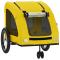 Remorque de vélo pour animaux de compagnie jauneCette remorque de vélo pour animaux de compagnie pratique est un excellent complément à la journée de votre animal de compagnie, lui permettant de profiter d'un voyage plus confortable. Cadre durable : le fer est un matériau solide et dur. Il est très apprécié dans la construction industrielle et la fabrication de meubles. Avec un cadre en fer, la remorque de vélo est robuste et fiable, ce qui vous permet de rouler en toute sécurité sur la route. Remorque de vélo confortable : cette remorque pour vélo est fabriquée en tissu oxford et comprend une housse en PVC pour protéger votre animal de compagnie de la bruine. De plus, le fond de la remorque est équipé d'une planche de support de charge noire pour un espace confortable. Conception pratique : Les portes avant et arrière à fermeture éclair facilitent l'entrée et la sortie. Les fenêtres en filet et le toit à fermeture éclair permettent à l'air de circuler à l'intérieur et de garder votre animal de compagnie au frais pendant le voyage. Conduite en toute sécurité : la remorque de vélo dispose de deux grandes roues qui permettent un déplacement en douceur et en toute sécurité sur différents terrains et les réflecteurs à l'extérieur offrent une visibilité dans l'obscurité, et le drapeau peut augmenter la sécurité routière. Nombreuses applications : parfaite pour transporter les petits chiens et les animaux de compagnie, cette remorque de vélo pour animaux de compagnie peut être attachée à votre vélo facilement. Elle peut également être utilisée pour transporter des courses, d'équipement de camping, des articles de sport ou tout autre objet que vous souhaitez emporter avec vous !