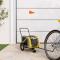 Remorque de vélo pour animaux de compagnie jaune et noirCette remorque de vélo pour animaux de compagnie pratique est un excellent complément à la journée de votre animal de compagnie, lui permettant de profiter d'un voyage plus confortable. Cadre durable : le fer est un matériau solide et dur. Il est très apprécié dans la construction industrielle et la fabrication de meubles. Avec un cadre en fer, la remorque de vélo est robuste et fiable, ce qui vous permet de rouler en toute sécurité sur la route. Remorque de vélo confortable : cette remorque pour vélo est fabriquée en tissu oxford et comprend une housse en PVC pour protéger votre animal de compagnie de la bruine. De plus, le fond de la remorque est équipé d'une planche de support de charge noire pour un espace confortable. Conception pratique : Les portes avant et arrière à fermeture éclair facilitent l'entrée et la sortie. Les fenêtres en filet et le toit à fermeture éclair permettent à l'air de circuler à l'intérieur et de garder votre animal de compagnie au frais pendant le voyage. Conduite en toute sécurité : la remorque de vélo dispose de deux grandes roues qui permettent un déplacement en douceur et en toute sécurité sur différents terrains et les réflecteurs à l'extérieur offrent une visibilité dans l'obscurité, et le drapeau peut augmenter la sécurité routière. Nombreuses applications : parfaite pour transporter les petits chiens et les animaux de compagnie, cette remorque de vélo pour animaux de compagnie peut être attachée à votre vélo facilement. Elle peut également être utilisée pour transporter des courses, d'équipement de camping, des articles de sport ou tout autre objet que vous souhaitez emporter avec vous !