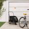 Remorque de vélo pour animaux de compagnie noirCette remorque de vélo pour animaux de compagnie pratique est un excellent complément à la journée de votre animal de compagnie, lui permettant de profiter d'un voyage plus confortable. Cadre durable : le fer est un matériau solide et dur. Il est très apprécié dans la construction industrielle et la fabrication de meubles. Avec un cadre en fer, la remorque de vélo est robuste et fiable, ce qui vous permet de rouler en toute sécurité sur la route.Remorque de vélo confortable : cette remorque pour vélo est fabriquée en tissu oxford et comprend une housse en PVC pour protéger votre animal de compagnie de la bruine. De plus, le fond de la remorque est équipé d'une planche de support de charge noire pour un espace confortable.Conception pratique : Les portes avant et arrière à fermeture éclair facilitent l'entrée et la sortie. Les fenêtres en filet et le toit à fermeture éclair permettent à l'air de circuler à l'intérieur et de garder votre animal de compagnie au frais pendant le voyage.Conduite en toute sécurité : la remorque de vélo dispose de deux grandes roues qui permettent un déplacement en douceur et en toute sécurité sur différents terrains et les réflecteurs à l'extérieur offrent une visibilité dans l'obscurité, et le drapeau peut augmenter la sécurité routière.Nombreuses applications : parfaite pour transporter les petits chiens et les animaux de compagnie, cette remorque de vélo pour animaux de compagnie peut être attachée à votre vélo facilement. Elle peut également être utilisée pour transporter des courses, d'équipement de camping, des articles de sport ou tout autre objet que vous souhaitez emporter avec vous !