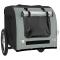 Remorque de vélo pour animaux de compagnie noir et grisCette remorque de vélo pour chien pratique est un excellent complément à la journée de votre animal de compagnie, lui permettant de profiter d'un voyage plus confortable. Cadre durable : le fer est un matériau solide et dur. Il est très apprécié dans la construction industrielle et la fabrication de meubles. Avec un cadre en fer, la remorque de vélo est robuste et fiable, ce qui vous permet de rouler en toute sécurité sur la route.Remorque de vélo confortable : cette remorque pour vélo est fabriquée en tissu oxford et comprend une housse en PVC pour protéger votre animal de compagnie de la bruine. De plus, le fond de la remorque est équipé d'une planche de support de charge noire pour un espace confortable.Conception pratique : Les portes avant et arrière à fermeture éclair facilitent l'entrée et la sortie. Les fenêtres en filet et le toit à fermeture éclair permettent à l'air de circuler à l'intérieur et de garder votre animal de compagnie au frais pendant le voyage.Conduite en toute sécurité : la remorque de vélo dispose de deux grandes roues qui permettent un déplacement en douceur et en toute sécurité sur différents terrains et les réflecteurs à l'extérieur offrent une visibilité dans l'obscurité, et le drapeau peut augmenter la sécurité routière.Nombreuses applications : parfaite pour transporter les petits chiens et les animaux de compagnie, cette remorque de vélo pour animaux de compagnie peut être attachée à votre vélo facilement. Elle peut également être utilisée pour transporter des courses, d'équipement de camping, des articles de sport ou tout autre objet que vous souhaitez emporter avec vous !