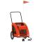 Remorque de vélo pour animaux de compagnie orangeCette remorque de vélo pour animaux de compagnie pratique est un excellent complément à la journée de votre animal de compagnie, lui permettant de profiter d'un voyage plus confortable. Cadre durable : le fer est un matériau solide et dur. Il est très apprécié dans la construction industrielle et la fabrication de meubles. Avec un cadre en fer, la remorque de vélo est robuste et fiable, ce qui vous permet de rouler en toute sécurité sur la route. Remorque de vélo confortable : cette remorque pour vélo est fabriquée en tissu oxford et comprend une housse en PVC pour protéger votre animal de compagnie de la bruine. De plus, le fond de la remorque est équipé d'une planche de support de charge noire pour un espace confortable. Conception pratique : Les portes avant et arrière à fermeture éclair facilitent l'entrée et la sortie. Les fenêtres en filet et le toit à fermeture éclair permettent à l'air de circuler à l'intérieur et de garder votre animal de compagnie au frais pendant le voyage. Conduite en toute sécurité : la remorque de vélo dispose de deux grandes roues qui permettent un déplacement en douceur et en toute sécurité sur différents terrains et les réflecteurs à l'extérieur offrent une visibilité dans l'obscurité, et le drapeau peut augmenter la sécurité routière. Nombreuses applications : parfaite pour transporter les petits chiens et les animaux de compagnie, cette remorque de vélo pour animaux de compagnie peut être attachée à votre vélo facilement. Elle peut également être utilisée pour transporter des courses, d'équipement de camping, des articles de sport ou tout autre objet que vous souhaitez emporter avec vous !