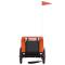Remorque de vélo pour animaux de compagnie orange et noirCette remorque de vélo pour animaux de compagnie pratique est un excellent complément à la journée de votre animal de compagnie, lui permettant de profiter d'un voyage plus confortable. Cadre durable : le fer est un matériau solide et dur. Il est très apprécié dans la construction industrielle et la fabrication de meubles. Avec un cadre en fer, la remorque de vélo est robuste et fiable, ce qui vous permet de rouler en toute sécurité sur la route.Remorque de vélo confortable : cette remorque pour vélo est fabriquée en tissu oxford et comprend une fenêtre en PVC contre la pluie pour protéger votre animal de compagnie de la bruine.Conception pratique : les portes avant et arrière à fermeture éclair facilitent l'entrée et la sortie. Les fenêtres en filet permettent à l'air de circuler à l'intérieur et de garder votre animal de compagnie au frais pendant le voyage.Conduite en toute sécurité : la remorque de vélo dispose de deux grandes roues qui permettent un déplacement en douceur et en toute sécurité sur différents terrains et les réflecteurs à l'extérieur offrent une visibilité dans l'obscurité, et le drapeau peut augmenter la sécurité routière.Nombreuses applications : parfaite pour transporter les petits chiens et les animaux de compagnie, cette remorque de vélo pour animaux de compagnie peut être attachée à votre vélo facilement. Elle peut également être utilisée pour transporter des courses, d'équipement de camping, des articles de sport ou tout autre objet que vous souhaitez emporter avec vous !