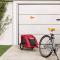 Remorque de vélo pour animaux de compagnie rougeCette remorque de vélo pour animaux de compagnie pratique est un excellent complément à la journée de votre animal de compagnie, lui permettant de profiter d'un voyage plus confortable. Cadre durable : le fer est un matériau solide et dur. Il est très apprécié dans la construction industrielle et la fabrication de meubles. Avec un cadre en fer, la remorque de vélo est robuste et fiable, ce qui vous permet de rouler en toute sécurité sur la route.Remorque de vélo confortable : cette remorque pour vélo est fabriquée en tissu oxford et comprend une housse en PVC pour protéger votre animal de compagnie de la bruine. De plus, le fond de la remorque est équipé d'une planche de support de charge noire pour un espace confortable.Conception pratique : Les portes avant et arrière à fermeture éclair facilitent l'entrée et la sortie. Les fenêtres en filet et le toit à fermeture éclair permettent à l'air de circuler à l'intérieur et de garder votre animal de compagnie au frais pendant le voyage.Conduite en toute sécurité : la remorque de vélo dispose de deux grandes roues qui permettent un déplacement en douceur et en toute sécurité sur différents terrains et les réflecteurs à l'extérieur offrent une visibilité dans l'obscurité, et le drapeau peut augmenter la sécurité routière.Nombreuses applications : parfaite pour transporter les petits chiens et les animaux de compagnie, cette remorque de vélo pour animaux de compagnie peut être attachée à votre vélo facilement. Elle peut également être utilisée pour transporter des courses, d'équipement de camping, des articles de sport ou tout autre objet que vous souhaitez emporter avec vous !