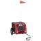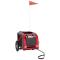 Remorque de vélo pour animaux de compagnie rouge et grisCette remorque de vélo pour animaux de compagnie pratique est un excellent complément à la journée de votre animal de compagnie, lui permettant de profiter d'un voyage plus confortable. Cadre durable : le fer est un matériau solide et dur. Il est très apprécié dans la construction industrielle et la fabrication de meubles. Avec un cadre en fer, la remorque de vélo est robuste et fiable, ce qui vous permet de rouler en toute sécurité sur la route.Remorque de vélo confortable : cette remorque pour vélo est fabriquée en tissu oxford et comprend une housse en PVC pour protéger votre animal de compagnie de la bruine. De plus, le fond de la remorque est équipé d'une planche de support de charge noire pour un espace confortable.Conception pratique : Les portes avant et arrière à fermeture éclair facilitent l'entrée et la sortie. Les fenêtres en filet et le toit à fermeture éclair permettent à l'air de circuler à l'intérieur et de garder votre animal de compagnie au frais pendant le voyage.Conduite en toute sécurité : la remorque de vélo dispose de deux grandes roues qui permettent un déplacement en douceur et en toute sécurité sur différents terrains et les réflecteurs à l'extérieur offrent une visibilité dans l'obscurité, et le drapeau peut augmenter la sécurité routière.Nombreuses applications : parfaite pour transporter les petits chiens et les animaux de compagnie, cette remorque de vélo pour animaux de compagnie peut être attachée à votre vélo facilement. Elle peut également être utilisée pour transporter des courses, d'équipement de camping, des articles de sport ou tout autre objet que vous souhaitez emporter avec vous !